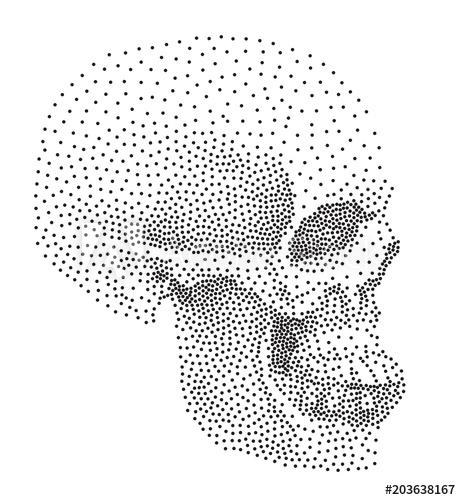 En direkte konsekvens av at «fargen» på likkledet ganske enkelt består av dobbeltbindinger, er at selv om det kan se ut som om det er skygger og gradsforskjeller på bildet, så er det altså kun én farge som utgjør bildet, og det som gjør at det ser ut som om det er mørkere og lysere forskjellige steder er ganske enkelt den samlede forekomsten av dobbeltbindinger, slik som vi kan se eksemplifisert på hodeskallen her. I toppen er det langt mellom prikkene og dermed fremstår det som «lyst», imens i øyehulen er det tett mellom prikkene og dermed fremstår det som «mørkt».