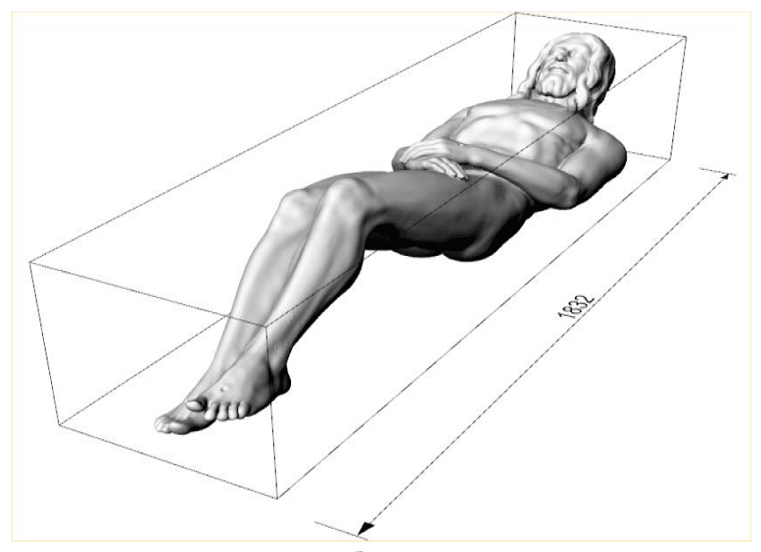 Et annet element i bildets fotografiske natur, er at bildet har tydelige perspektiver (som forøvrig ikke var noe man behersket i særlig grad på 1300-tallet), der det blir tydelig at hodet ligger litt bøyd mot brystet, og føttene er bøyde. Dette er forøvrig helt konsekvent med en dødsstivhet som inntreffer etter døden (Rigor mortis).